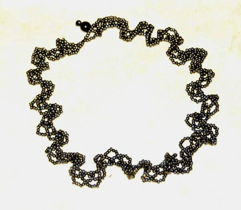 Die Oglala mag ich eigentlich sehr gerne, sie ist einfach zu machen und sieht sehr schön aus. Die Anleitung und auch die Abbildung haben einen Verschluss aus einer Perle. Wer nicht so große Perlen besitzt oder wem es nicht gefällt, der kann natürlich auch ganz einfache Kettenverschlüsse benutzen. |