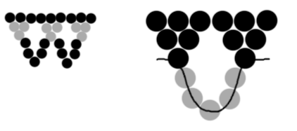 Jetzt nimmt man immer fünf Perlen auf und geht jeweils durch die zweite/mittlere Perle der zweiten Reihe. |